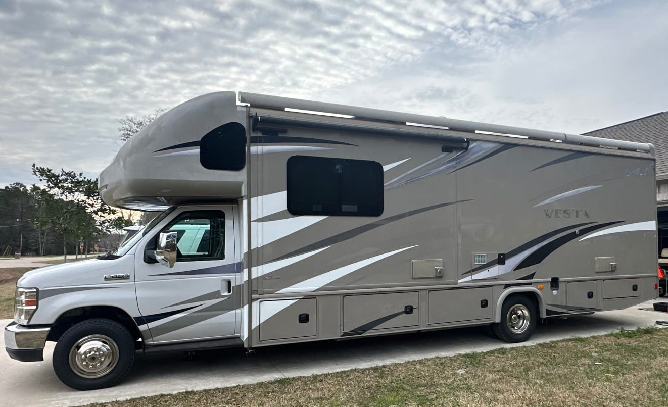Rent our 2017 Holiday Rambler Vesta 30D Class C Motorhome. This spacious RV can be delivered and set up at Metal Manor prior to your arrival, providing additional accommodations for your group.